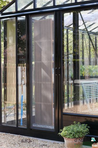 Vliegendeur Vliegen zullen je planten niet veel kwaad doen, maar vogels, slakken of ander ongedierte doen zich graag tegoed aan jouw verse groenten. En misschien ziet de kat van de buren wel een potentiële kattenbak in jouw serre? Wie ongewenste gasten buiten wil houden, raden wij een vliegendeur aan. De vliegendeur is enkel combineerbaar met een enkele schuifdeur (0,60 m) of een brede schuifdeur (1,20 m).