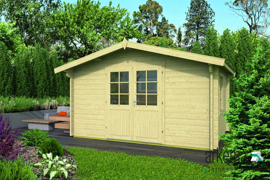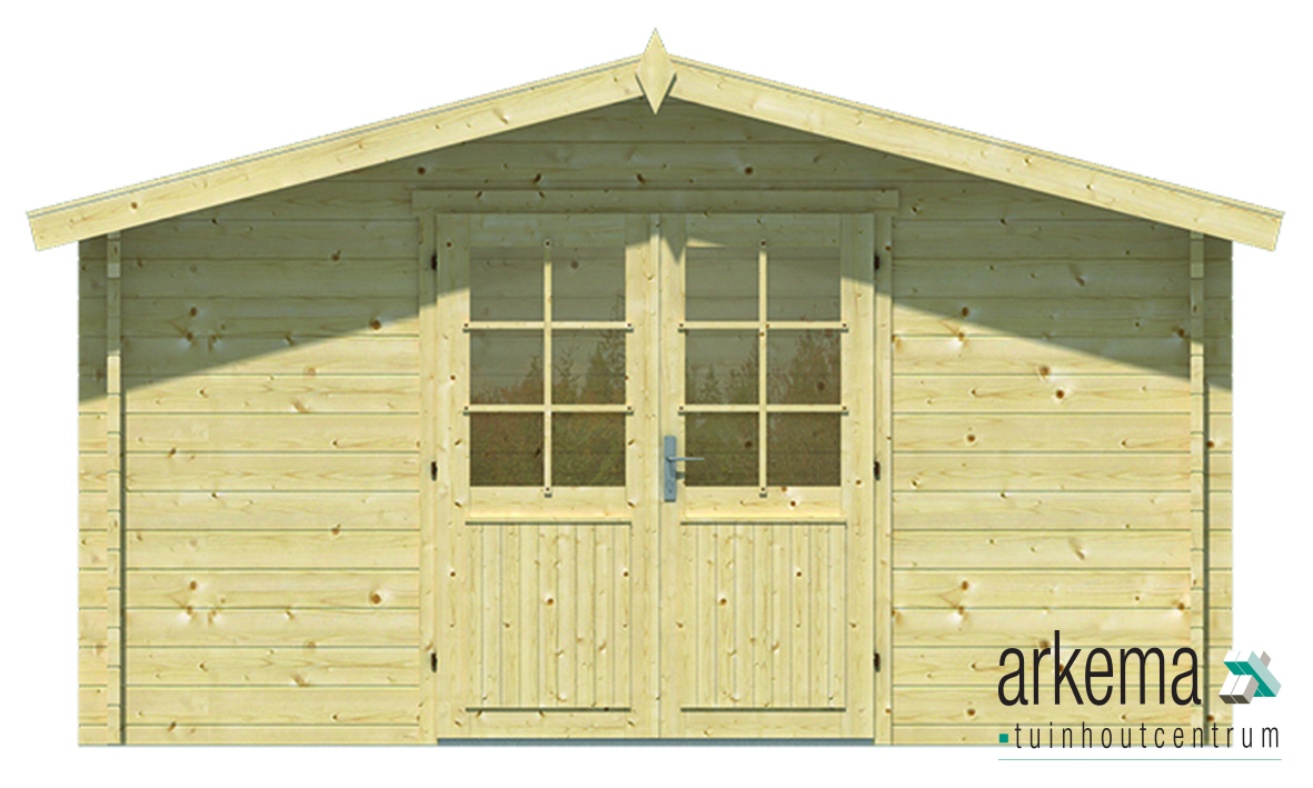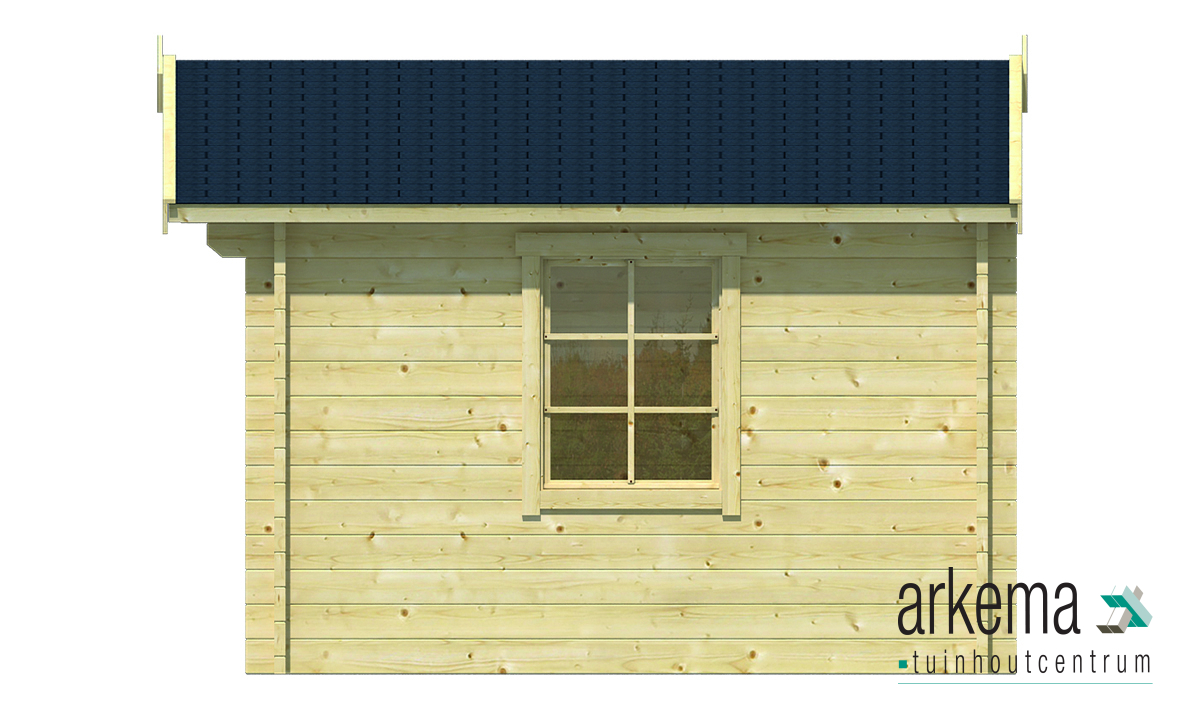 Blokhut Dyre. Deze blokhut is gemaakt van 40mm Vuren hout. De blokhut heeft de volgende maten; L400xB300xH236cm. De prijs is inclusief echt glas , hang en sluitwerk, exclusief dakbedekking. Bij de blokhut komen losse roedes voor de ramen en deuren. Stel zelf je blokhut samen door onderstaande blokhut configurator in te vullen. Kies de verschillende soorten dakbedekking, dakgoot, impregnering, fundering, vloer en extra opties.