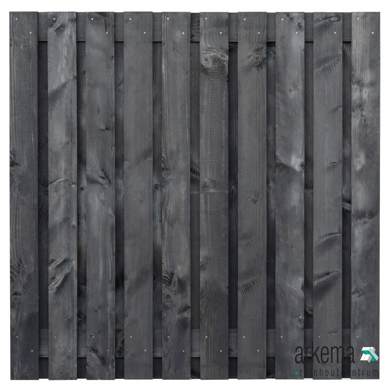 Tuinscherm Marlies, zwart geïmpregneerd douglas, RVS-geschroefd, 21-planks (19+2) 180 x 180 cm