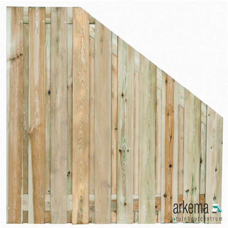 Tuinscherm Enschede verloop, groen geïmpregneerd grenen, RVS-geschroefd, 21-planks (19+2) 180 x 180/90 cm
